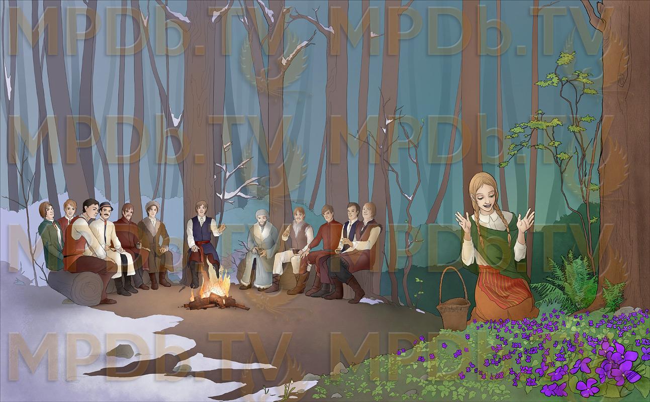 Lorsqu'une jeune reine exigeante offre un panier rempli d'or à quiconque lui apportera un bouquet de perce-neige pour le Nouvel An, une femme cupide envoie sa belle-fille à la recherche des fleurs au fond de la forêt, bien persuadée cependant qu'elle n'y parviendra pas et mourra de froid. Pourtant les Douze mois la sauvent d'une mort certaine en créant le printemps autour d'elle, ce qui lui permet de revenir avec les fleurs. Mais l'héroïne n'est pas au bout de ses peines...