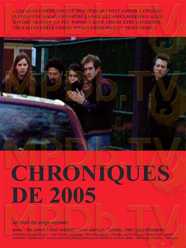 Chroniques de 2005, c'est l'histoire de Lila, Nico, Yoni, Justine et Guy, les destins parallèles de trois garçons et deux filles nés au début des années 80, cinq personnages qui ont accepté de faire de leur vie un film... Quelque part dans la région parisienne, ils veulent sortir de leur chambre de bonne, de leur petit boulot, ils voudraient croire à l'amour absolu, à une vie plus forte, mais c'est déjà un vieux rêve...