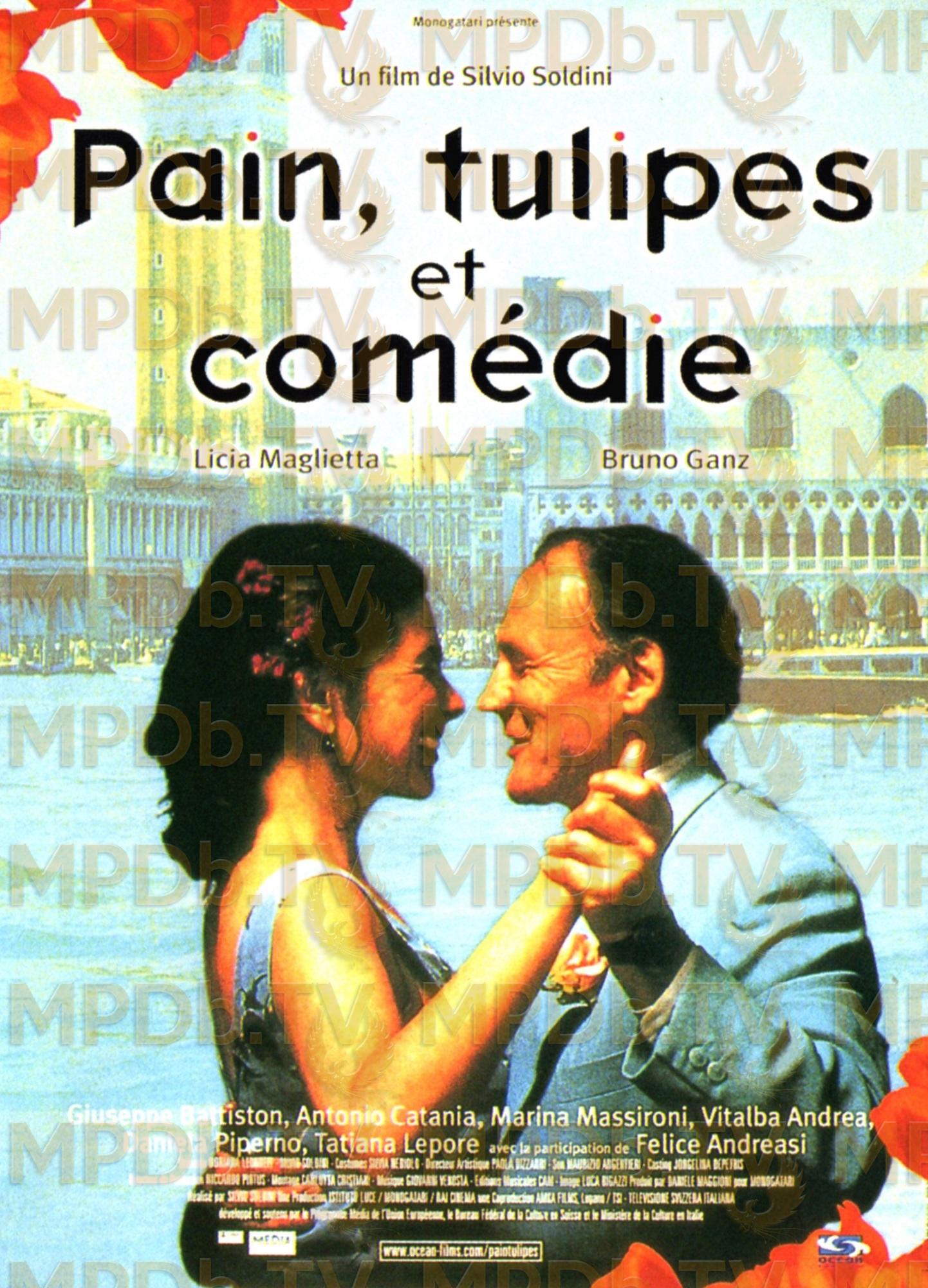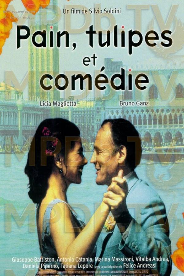Au cours d'une excursion touristique en autocar, Rosalba (Licia Maglietta), femme au foyer de Pescara, est oubliée au bord de la route, dans un auto-grill. Au lieu d'attendre que son mari et ses enfants viennent la chercher, elle décide, vexée, de rentrer seule à la maison. Elle se retrouve dans une voiture en direction de Venise, ville qu'elle ne connaît pas. Ce qui devait être une balade d'une journée se transforme en "petites vacances". Mimmo (Antonio Catania ; Ormai e fatta), son mari, est fou de rage. Découvrant qu'un de ses employés, Constantino (Guiseppe Battiston ; Le acrobate), spécialiste en hydraulique, est un grand lecteur de polars, il l'envoie alors à Venise à la recherche de sa femme. Entre temps, Rosalba a commencé une nouvelle vie. Elle a trouvé du travail chez un vieux fleuriste anarchiste et loge chez Fernando (Bruno Ganz ; L'éternité et un jour), un islandais travaillant comme serveur dans un restaurant. Elle est devenue l'amie intime de sa voisine Grazia (Marina Massironi ; Cosi e la vita), esthéticienne et masseuse. Encouragée par Fernando, Rosalba s'est remise à jouer de l'accordéon, son ancienne passion. Elle se détache petit à petit de son mari rustre et de sa routine ménagère. Quand Constantino parvient à la dénicher, il va se trouver, lui aussi, engagé dans une histoire inattendue. Présentée à la Quinzaine des Réalisateurs au Festival de Cannes 2000 et en sélection officielle au 28ème Festival du Film International de Bruxelles, cette comédie légère de Silvio Soldini (Rom Tour) a connu un immense succès en Italie. Pain, Tulipes et Comédie a également remporté trois prix David de Donatello (les Césars italiens) - meilleure image, meilleure mise en scène et meilleur scénario. Licia Maglietta a d'ailleurs reçu le prix David De Donatello du meilleur premier rôle féminin, Bruno Ganz celui du meilleur premier rôle masculin, Marina Massironi celui du meilleur second rôle féminin et Guiseppe Battiston celui du meilleur second rôle masculin.