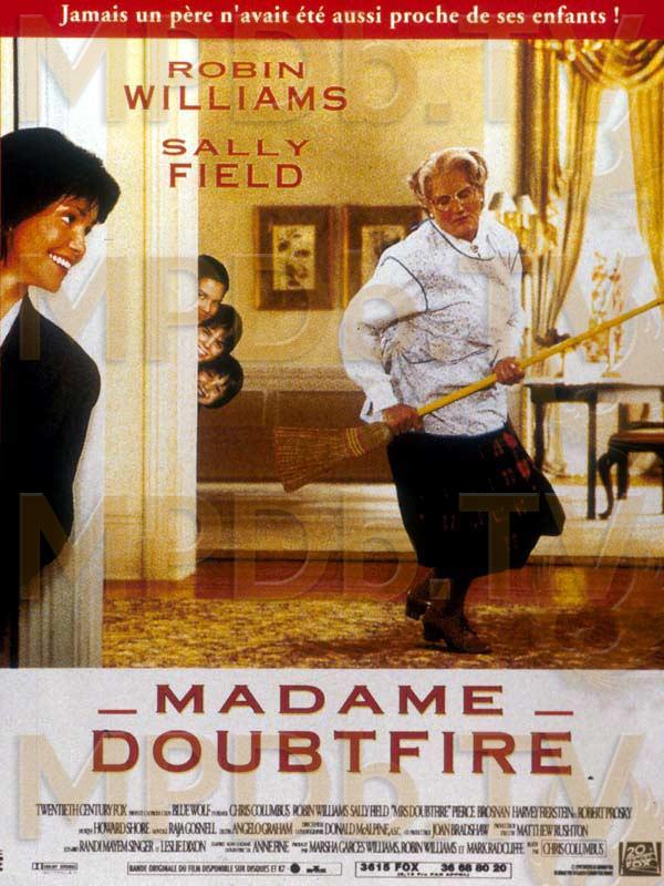 Privé, à la suite de son divorce, de ses trois enfants qu'il adore, Daniel Hillard, doubleur de dessins animés, met en oeuvre tous ses talents d'acteur et d'imitateur et se transforme en respectable gouvernante irlandaise. Lorsque Mme Doubtfire se presente dans la famille Hillard, elle est acceptée a l'unanimité.