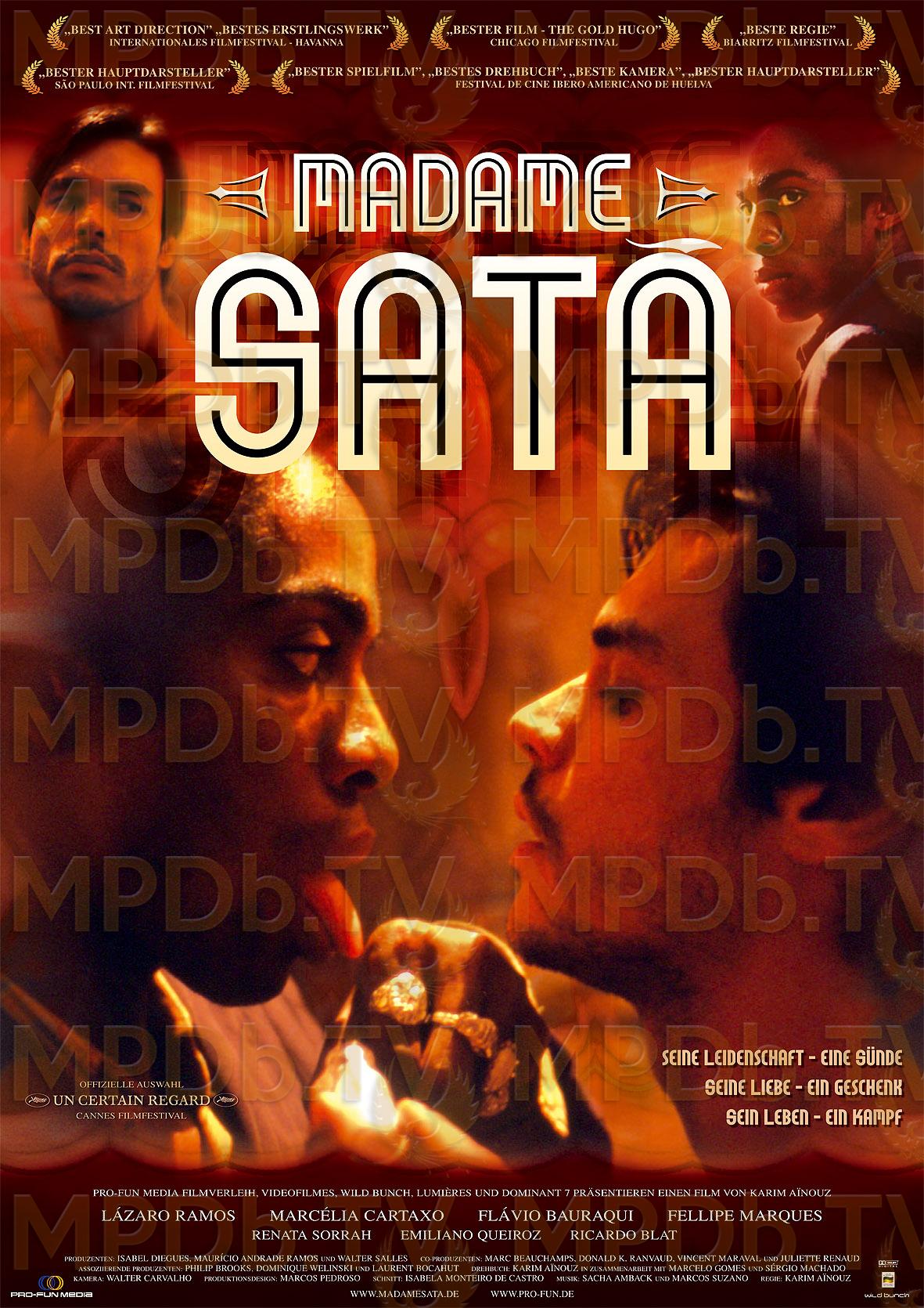 Madame Sata s'inspire librement du personnage de Joao Francisco dos Santos (1900-1976), plus connu sous le nom de "Madame Sata", un homme noir d'1m78 et 88 kilos de muscle. Tour à tour malandrin, travesti, bagarreur, cuisinier, héros, taulard, père adoptif de sept enfants, Sata a passé la plupart de sa vie dans les rues chaudes de Lapa, le Montmartre des Tropiques, le Rio bohémien. Madame Sata est le portrait de ce personnage explosif et complexe, à la fois maître généreux, traître cruel et amant dévoué. Ce film retrace également l'émergence de la culture afro-brésilienne urbaine et vibrante du Rio de Janeiro des années qui suivirent l'abolition de l'esclavage au Brésil (1888).