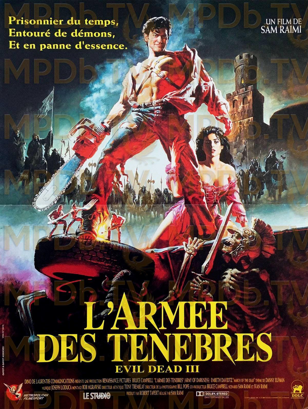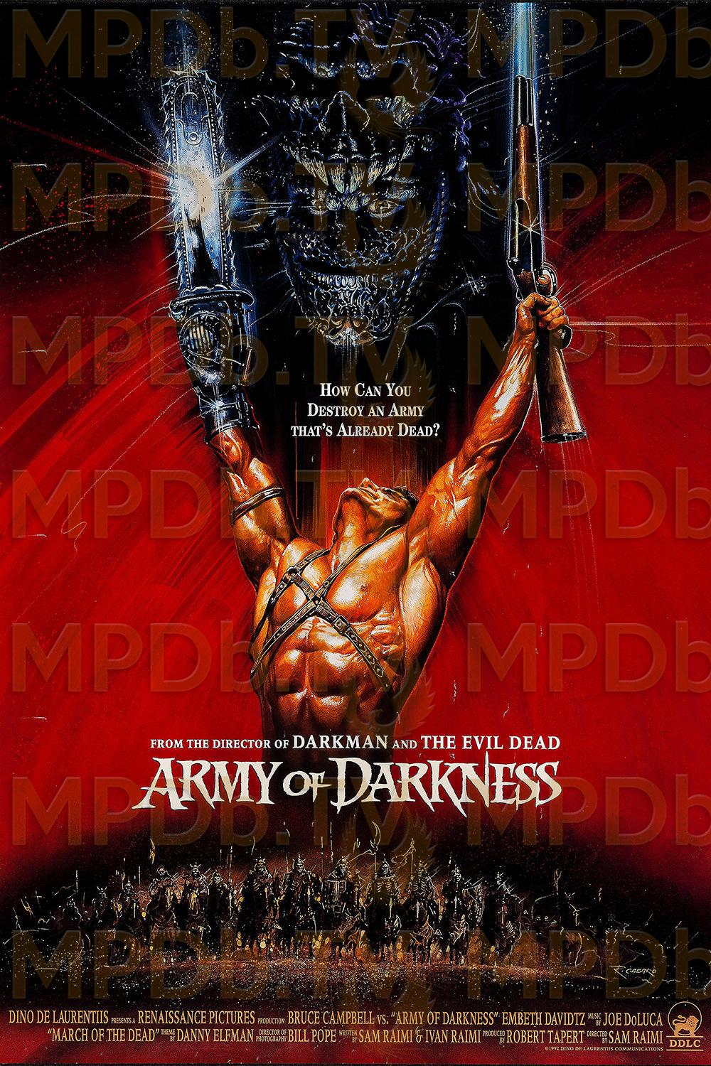 Une tronçonneuse greffée au poignet, un fusil à canon scié dans l'autre main, Ash, le héros des Evil Dead, remonte le cours du temps jusqu'en 1300. Là, il lui faut mettre la main sur le Nécronomicon, grimoire à l'origine de ses malheurs. Sa quête se transforme vite en effarante croisade, qui le mène à affronter une armée de squelettes...