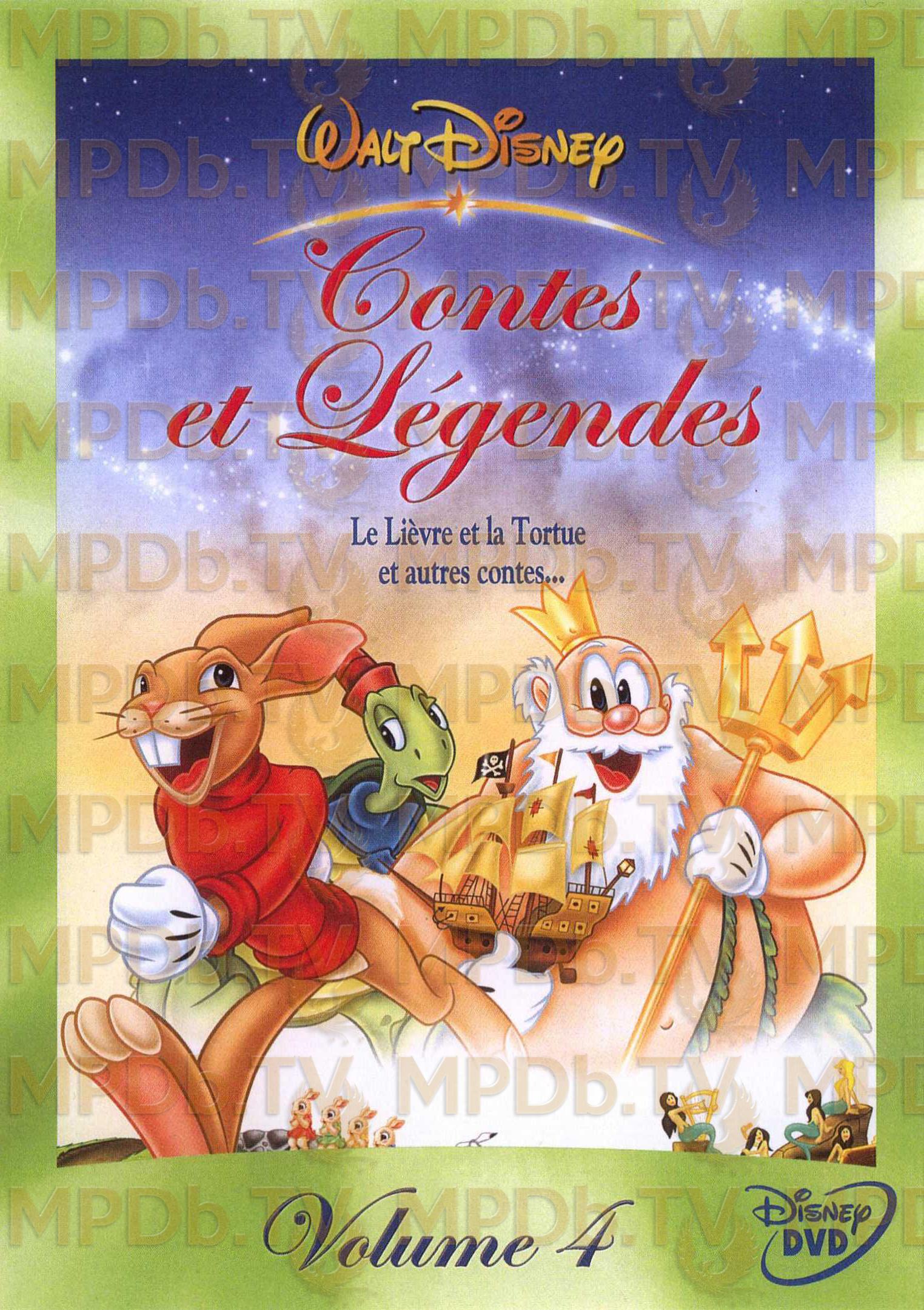 La collection «Contes et Légendes» propose des histoires d’ici et d’ailleurs racontées depuis des générations et mises en images par le Studio Walt Disney. Le quatrième volume comprend: - Le lièvre et la tortue (The Tortoise and the Hare - 1934 - 9’) - Le joueur de flûte de Hamelin (The Pied Piper - 1933 - 8’) - Le retour de Toby la tortue (Toby Tortoise Returns - 1936 - 7’) - Le roi Midas (The Golden Touch - 1935 - 10’) - Le vieux roi Cole (Old King Cole - 1933 - 7’) - Le roi Neptune (King Neptune - 1932 - 7’)