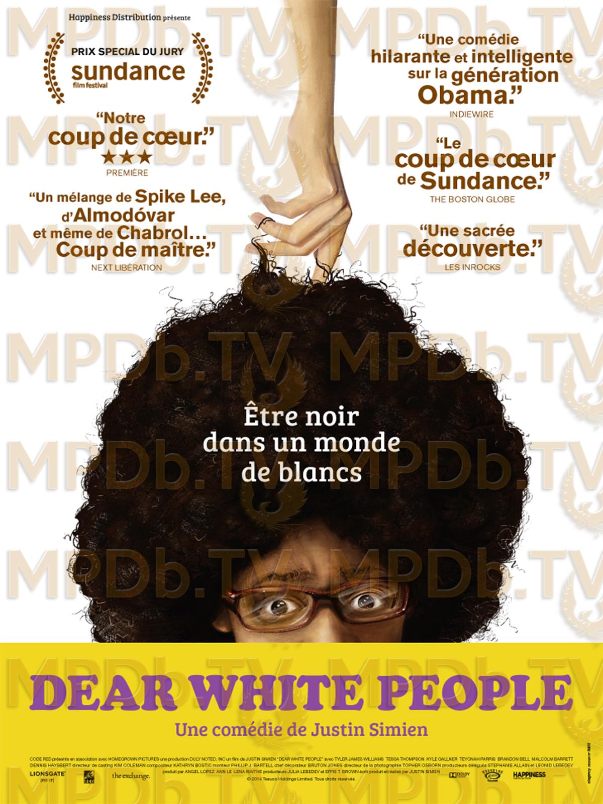Etudiante métisse à l'université, Samantha White anime une émission radio provocatrice et controversée appelée «Dear White People» afin de dénoncer les stéréotypes et les discriminations dont sont encore parfois victimes les Afro-américains. Un jour, elle met au défi ses auditeurs blancs : «Chers Blancs, le nombre d'amis noirs nécessaire pour ne pas avoir l'air raciste vient d'être élevé à deux». De son côté, la superbe Coco veut absolument devenir blanche. Lionel, le petit nouveau à la coupe afro improbable, ne sait pas vraiment où il se trouve et n'arrive pas à affirmer son homosexualité. Samantha, elle, n'assume pas de sortir avec un Blanc...